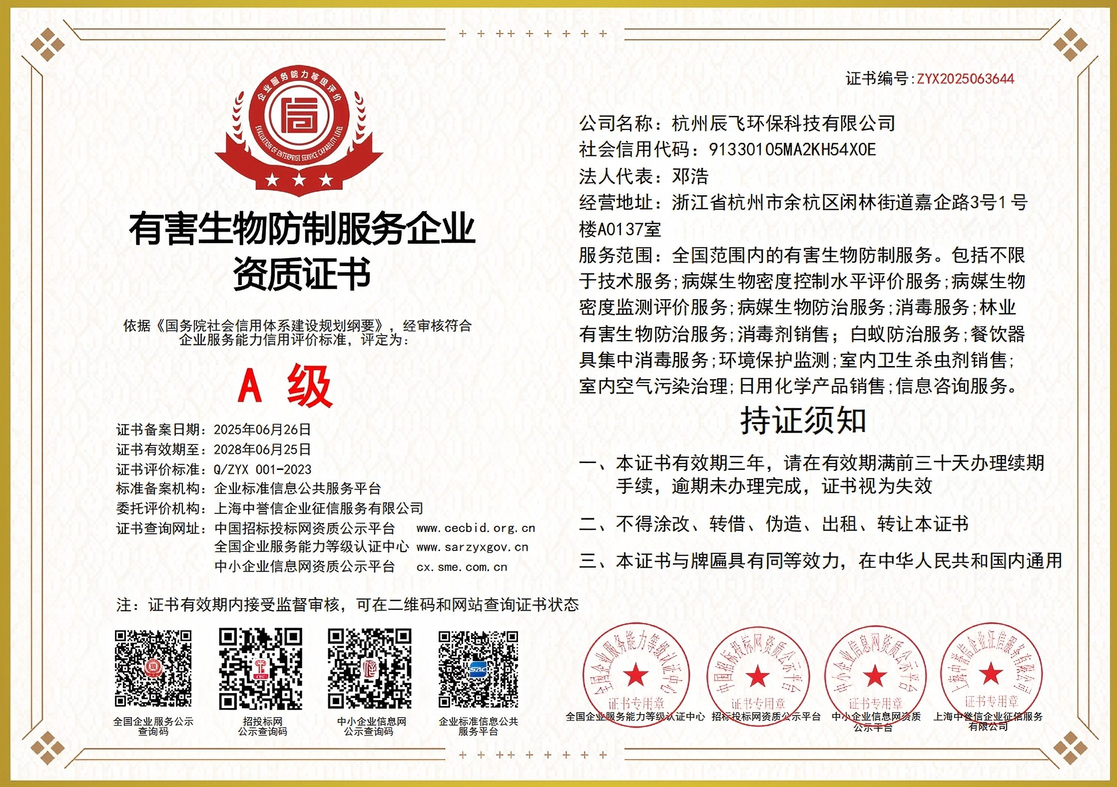 杭州辰飛環(huán)??萍加邢薰臼且患覍?zhuān)業(yè)的PCO有害生物防治服務(wù)機(jī)構(gòu)。是經(jīng)杭州市工商局注冊(cè)登記、杭州市白蟻防治管理所、PCO協(xié)會(huì)批準(zhǔn)的城市害蟲(chóng)綜合治理消殺公司,是集除四害、白蟻消殺、除蟲(chóng)、消毒殺菌、室內(nèi)空氣污染治理、藥械銷(xiāo)售于一體的大型專(zhuān)業(yè)杭州有害生物防治科技有限公司。主要從事新建、擴(kuò)建、改建、裝飾裝修單位建筑物的白蟻防治和白蟻預(yù)防工程,同時(shí)從事工廠、酒店、企事業(yè)單位、住宅小區(qū)和家庭的”四害”消殺和白蟻防治服務(wù),長(zhǎng)期向各類(lèi)型客戶提供杭州白蟻消殺、除蟑螂、除老鼠、除蟲(chóng)、消毒殺菌等優(yōu)質(zhì)服務(wù)。 本公司自成立以來(lái),秉承“誠(chéng)信、敬業(yè)、高效、務(wù)實(shí)”的發(fā)展原則,以現(xiàn)...